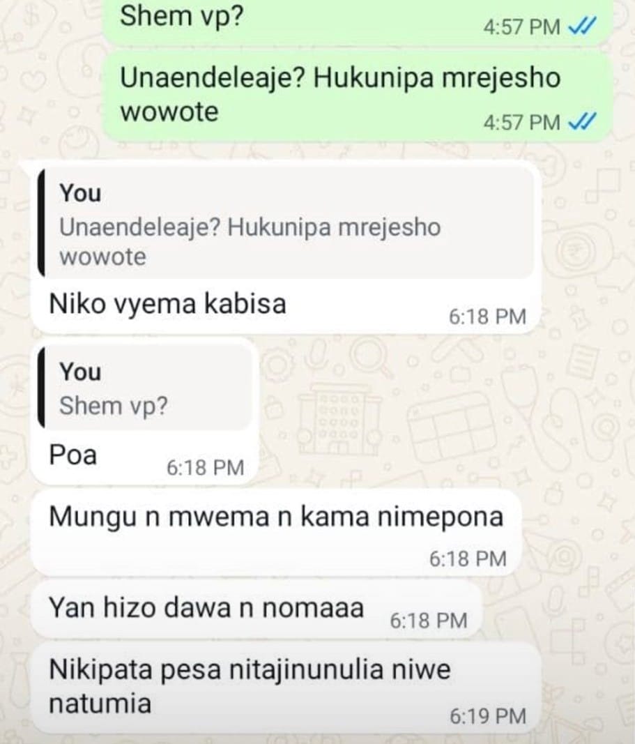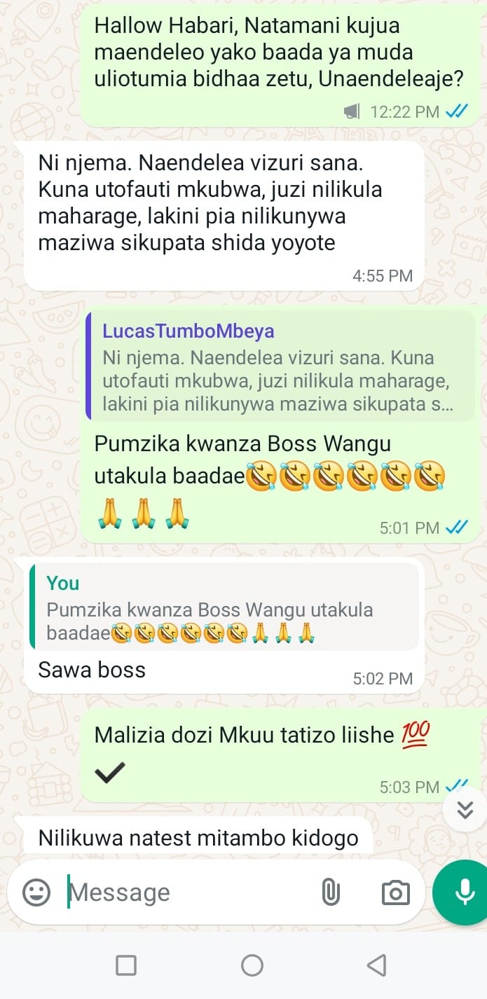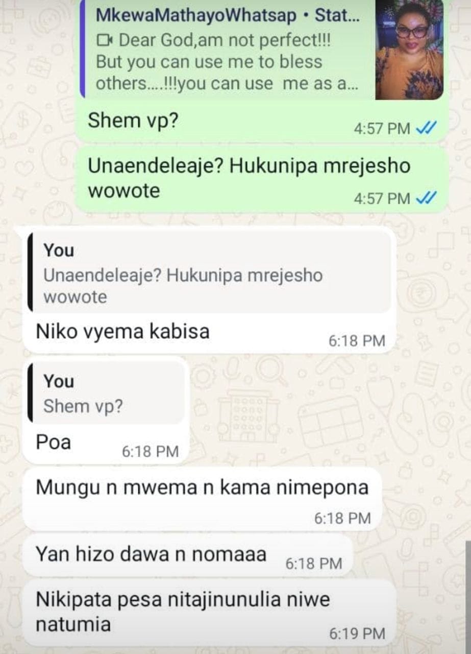 Sitaki baadae unitumie meseji kama aliyonitumia huyu mtu hapa chini ambae niliwasiliana nae miaka mitatu bila kufanya maamuzi na mwisho wa siku akanitumia ujumbe huu hapa chini...