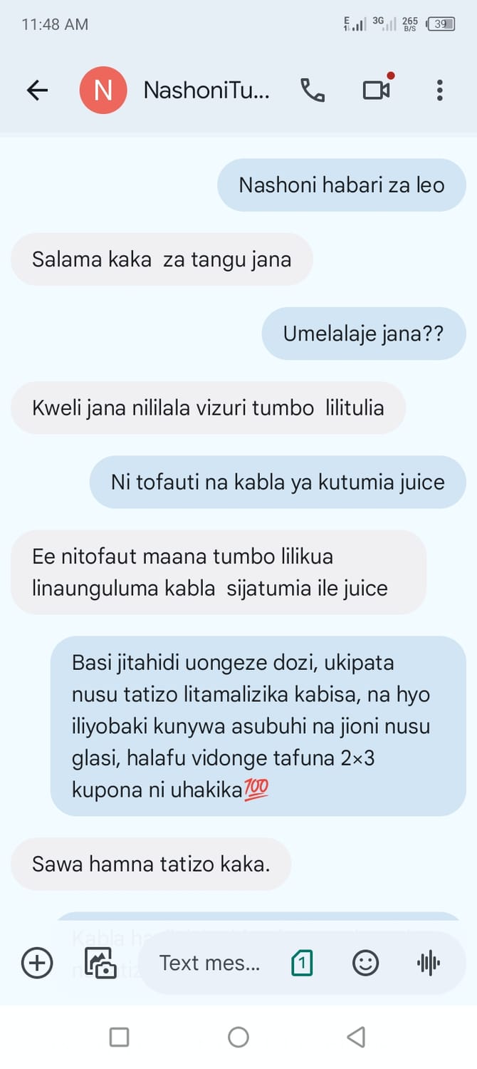 Kwakua nina imani 100% dozi hii itakusaidia kupona Vidonda vya Tumbo na magonjwa mengine sugu hivyo hata wewe utakuwa balozi wangu mzuri wa kuniletea wahanga wengine.