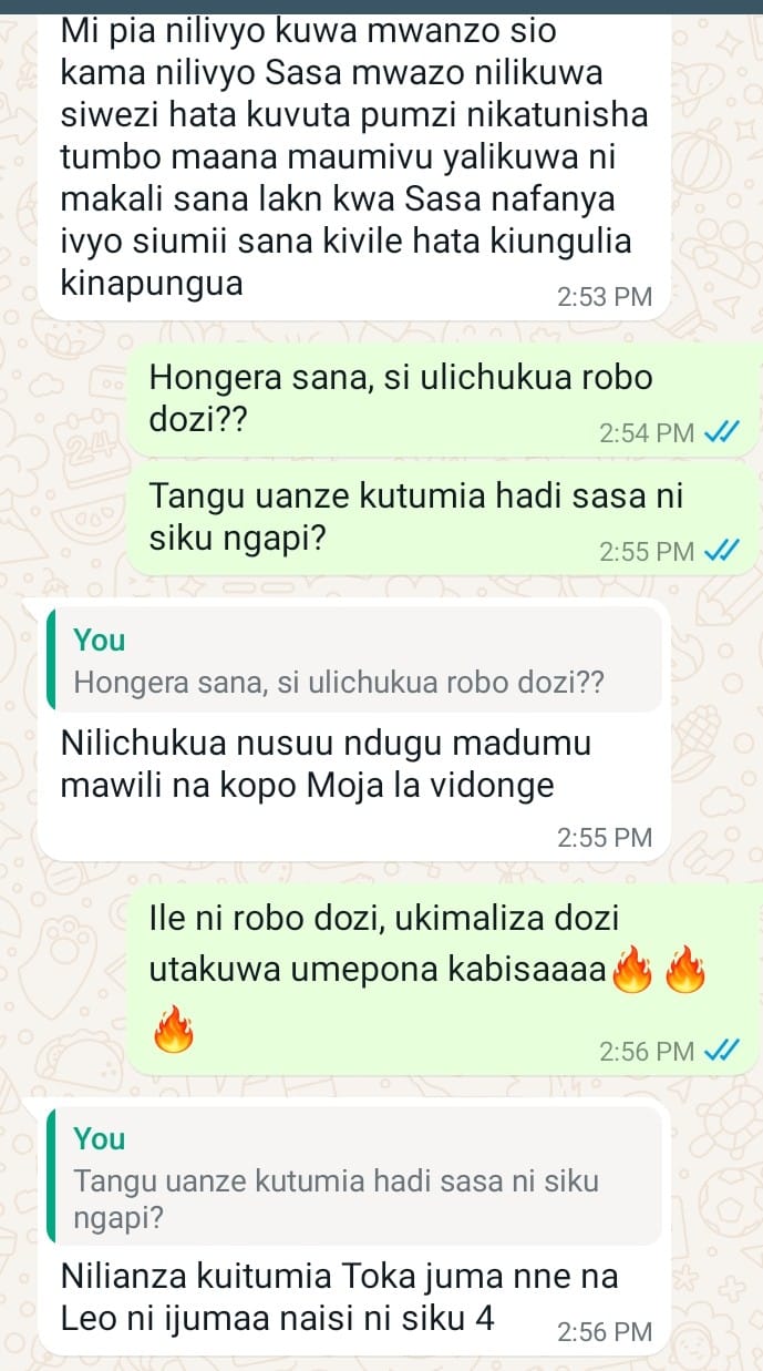 Baada ya dozi ya pili sikuhitaji tena kuongeza dozi ya mwezi wa tatu…